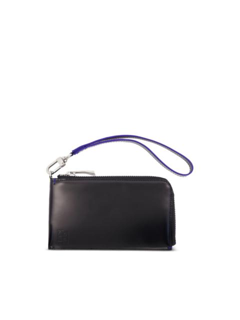 zip-around leather wallet Highlights - Black - Leather construction - Zip fastening - Wrist strap - Silver-tone hardware - Logo detail Imported Composition Outer: Calf Leather 100%, Polyester 100% Lining: Calf Leather 100% SIZE & FIT Measurement LENGTH 6.29 in(16 cm) WIDTH 3.74 in(9.5 cm)