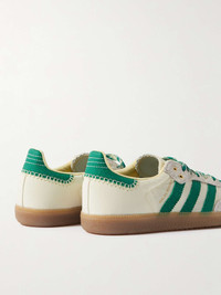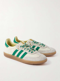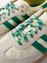 adidas Consortium’s ongoing collaboration with Wales Bonner centres on icons of '70s style. These 'Samba' sneakers are made from panels of durable shell, plush suede and tactile lizard-effect leather and detailed with co-branded signatures and the hallmark stripes. They also come with spare solid-colour laces if you fancy a cleaner look. Size & Fit - UK 3.5 = US 4/EU 36 - UK 4 = US 4.5/EU 37 - UK 4.5 = US 5/EU 37.5 - UK 5 = US 5.5/EU 38 - UK 5.5 = US 6/ EU 39 - UK 6 = US 6.5/EU 39.5 - UK 6.5 = US 7/EU 40 - UK 7 = US 7.5/EU 41 - UK 7.5 = US 8/EU 41.5 - UK 8 = US 8.5/EU 42 - UK 8.5 = US 9/EU 43 - UK 9 = US 9.5/EU 43.5 - UK 9.5 = US 10 /EU 44 - UK 10 = US 10.5/EU 45 - UK 10.5 = US 11/EU 45.5 - UK 11 = US 11.5/EU 46 - UK 11.5 = US 12/EU 47 - UK 12 = US 12.5/EU 47.5 - UK 12.5 = US 13/EU 48 - UK 13 = US 13.5/EU 49 - UK 13.5 = US 14/EU 49.5 - UK 14 = US 14.5/EU 50 - Fits true to size. Take your normal size Details & Care - Cream shell, off-white suede, emerald and cream lizard-effect leather (Cow) - Lace-up - Style number: GY4344 - Designer colour: Cream White/ Bold Green/ Easy Yellow - adidas follows its own size guide, therefore the size stated on the box will differ from the one provided in our size chart. To receive your correct fit, please refer to Size & Fit notes - This item has been imported