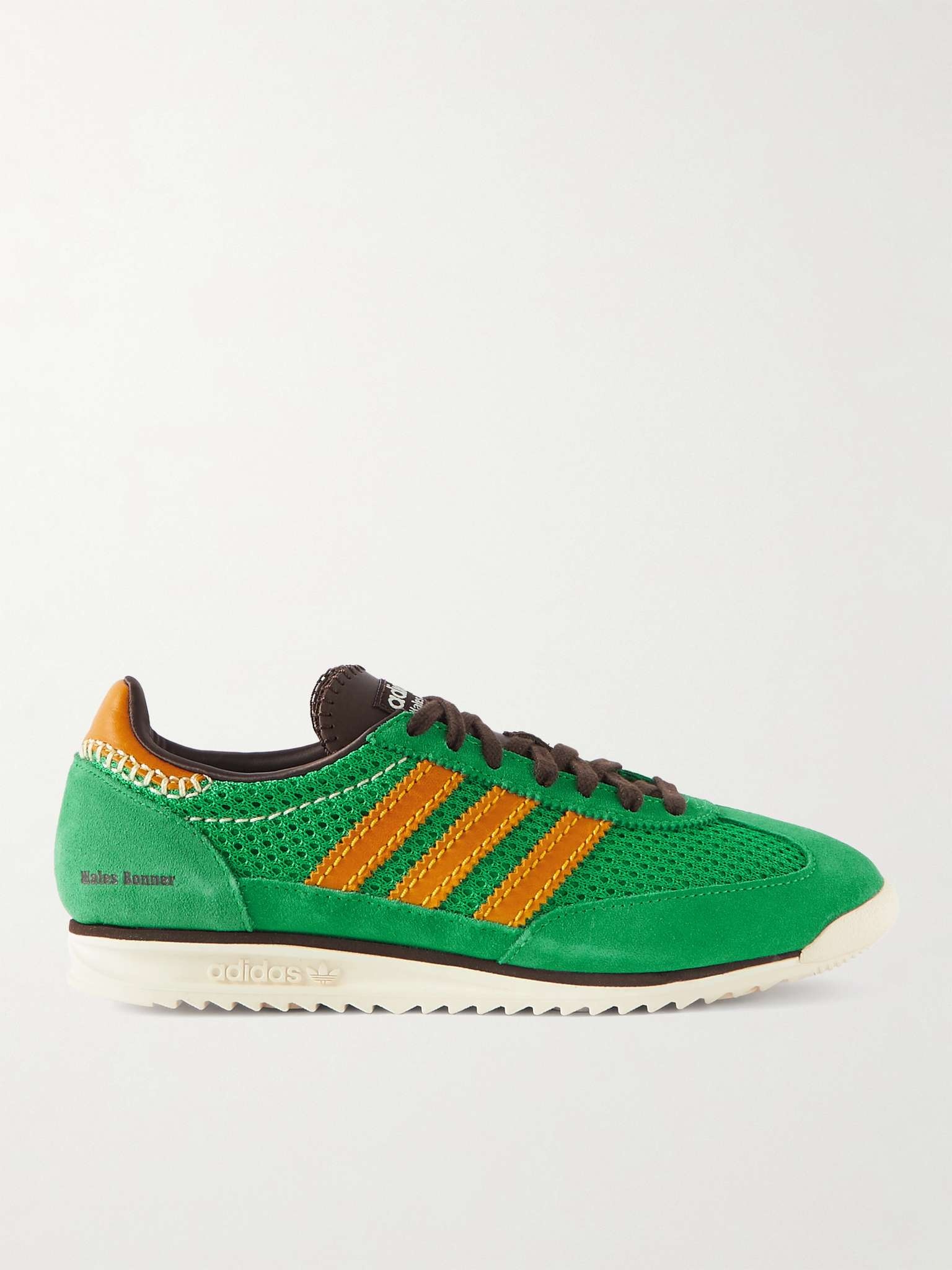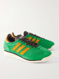 London-based designer Grace Wales Bonner continues to explore her Caribbean influences for her collaboration with adidas Consortium - the collection is inspired by Jamaican culture. These 'SL72' sneakers are made from mesh-panelled suede and have lightweight rubber soles with a serrated tread. Size & Fit - UK 3.5 = US 4/ EU 36 - UK 4 = US 4.5/ EU 37 - UK 4.5 = US 5/ EU 37.5 - UK 5 = US 5.5/ EU 38 - UK 5.5 = US 6/ EU 39 - UK 6 = US 6.5/ EU 39.5 - UK 6.5 = US 7/ EU 40 - UK 7 = US 7.5/ EU 41 - UK 7.5 = US 8/ EU 41.5 - UK 8 = US 8.5/ EU 42 - UK 8.5 = US 9/ EU 43 - UK 9 = US 9.5/ EU 43.5 - UK 9.5 = US 10/ EU 44 - UK 10 = US 10.5/ EU 45 - UK 10.5 = US 11/ EU 45.5 - UK 11 = US 11.5/ EU 46 - UK 11.5 = US 12/ EU 47 - UK 12 = US 12.5/ EU 47.5 - UK 12.5 = US 13/ EU 48 - UK 13 = US 13.5/ EU 49 - UK 13.5 = US 14/ EU 49.5 - UK 14 = US 14.5/ EU 50 Details & Care - Green, marigold and dark-brown suede, green mesh - Lace-up - Designer colour: Green/ Collegiate Gold/ Dark Brown - Style number: IG0571 - adidas Consortium follows its own size guide, therefore the size stated on the box will differ from the one provided in our size chart. To receive your correct fit, please refer to Size & Fit notes - This item has been imported
