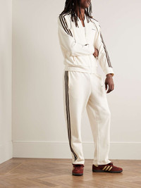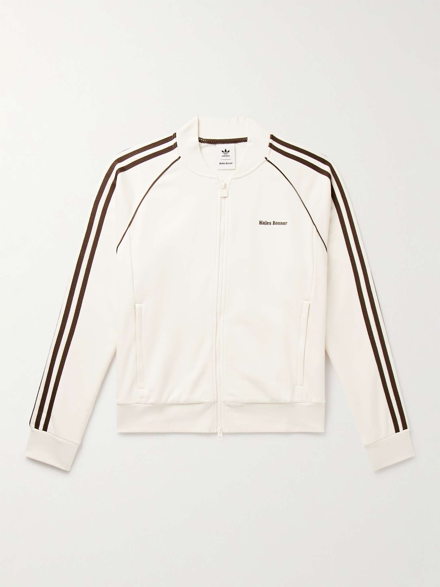 An iconic style from the brand, adidas Consortium’s track jacket is updated as part of an ongoing collaboration with Wales Bonner. It’s made from cotton-blend jersey and detailed with the signature '3-Stripes' along the sleeves and embroidered with the London-based label's moniker at the chest. Size & Fit - Those with broad shoulders may wish to take the next size up - Mid-weight, stretchy fabric - Model is shown wearing a L - Model measures: chest 38"/ 96cm, height 6'2"/ 188cm Details & Care - Ivory and dark-brown loopback cotton-blend jersey - Two-way zip fastening - 70% cotton, 30% recycled polyester; trim: 60% cotton, 35% recycled polyester, 5% spandex; lining: 100% recycled polyester - Machine wash - Designer colour: Chalk White