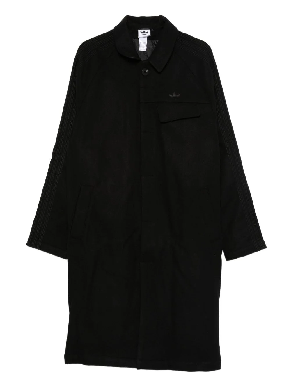 3-Stripes logo coat Highlights - Black - Concealed front button fastening - Signature 3-stripes logo - Rear vent Imported Composition Outer: Recycled Polyester 55%, Acrylic 40%, Wool 5% Lining: Recycled Polyester 100% SIZE & FIT Model measurements Height 6 ft 1 in(1.85 m) Bust/Chest 35.82 in(91 cm) Hips 37.79 in(96 cm) Waist 29.13 in(74 cm) Washing instructions Read Manufacturer Guidelines
