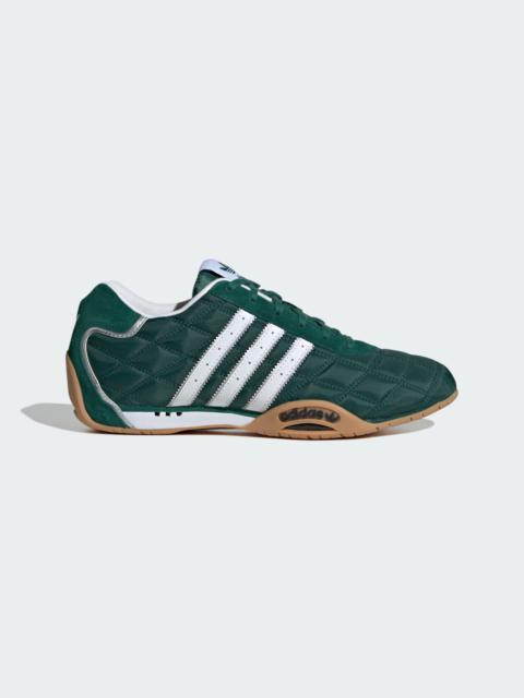 Lifestyle shoes inspired by racing. Inspired by the sleek lines of race cars, the Adi Racer Lo Shoes are built for life in the fast lane. The nylon upper is detailed with signature double cross stitching, while reflective piping adds visibility after dark. Underneath, a carbon insert keeps feet feeling light. Whether you're heading out for a coffee run or meeting friends after hours, the Adi Racer Lo helps you navigate the twists and turns of everyday life with confidence. Details - Narrow fit - Lace closure - Nylon upper with suede and leather details - Textile lining - Reflective piping - Carbon insert in tooling - Rubber outsole - Imported - Product code: JQ5755 - Product color: Collegiate Green / Cloud White / Gum