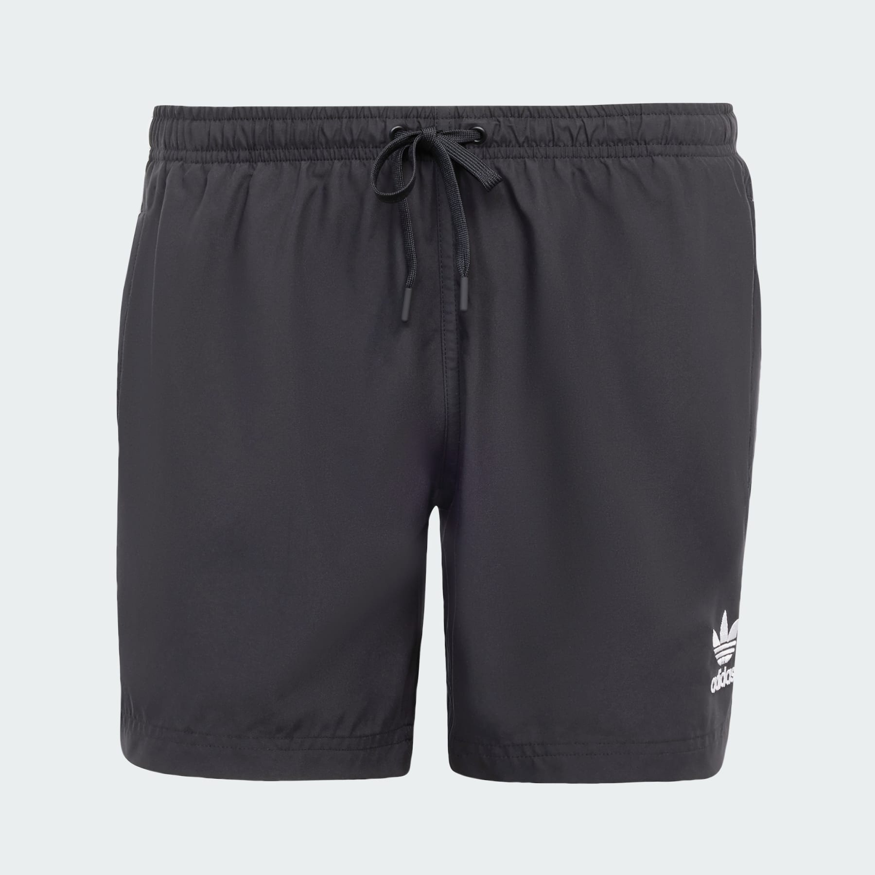 adidas swim shorts made with recycled materials. Whether you're lounging poolside or diving into warm-weather adventure, these adidas swim shorts have you covered. The twill fabric is peached for extra softness while still being quick-drying, so you can transition easily from water to land activities. Classic 3-Stripes and a tonal Trefoil keep your style game strong. This product is made with 100% recycled materials. By reusing materials that have already been created, we help to reduce waste and our reliance on finite resources and reduce the footprint of the products we make. Details - Regular fit - Drawcord-adjustable elastic waist - 100% polyester (recycled) - Soft feel - Inner mesh briefs - Quick-drying fabric - Imported - Product code: JD0957 - Product color: Black