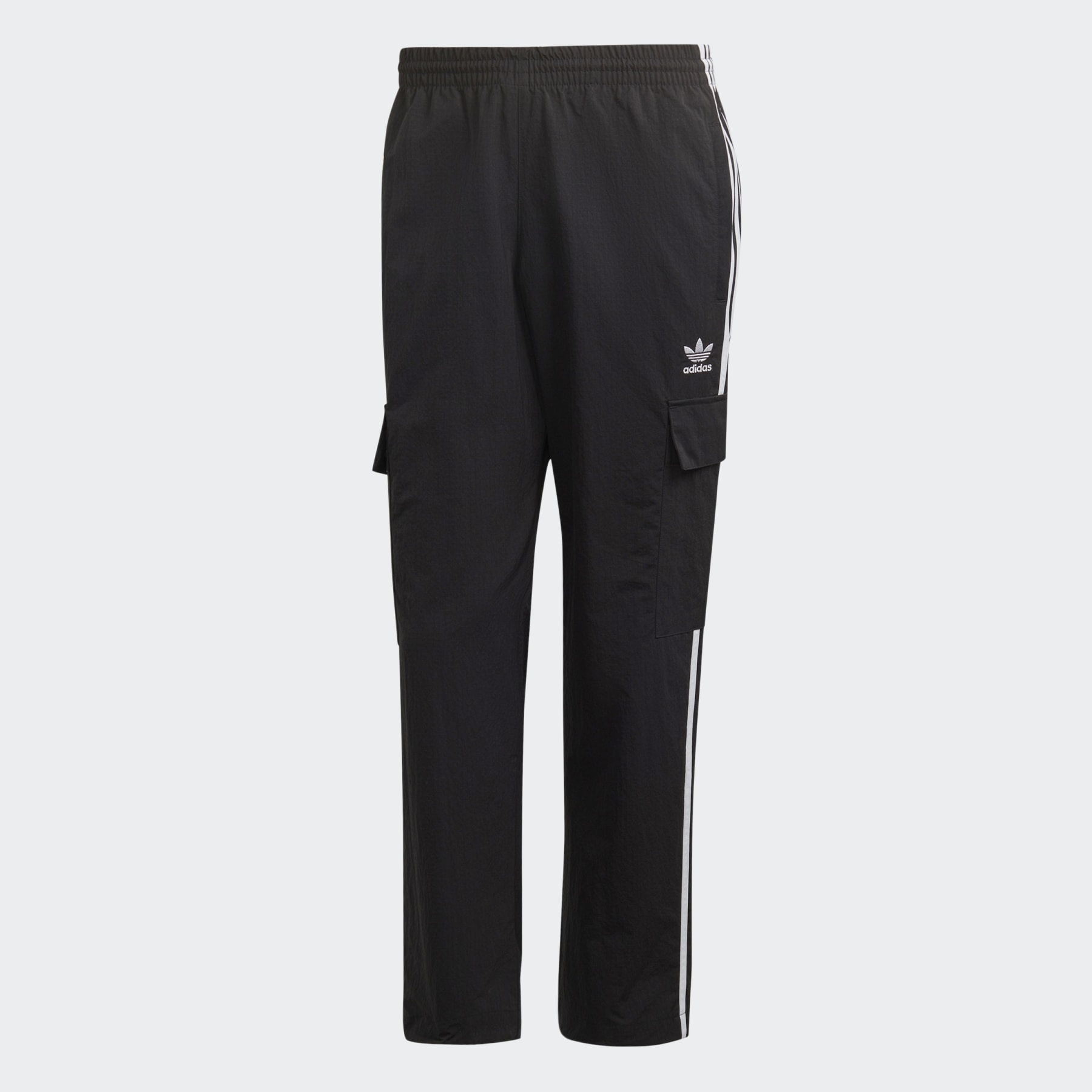 Adventure-ready cargo pants made with recycled materials. Fashion meets function with these adidas cargo pants. A tried and true style gets updated with ripstop material and tactical pockets that perfect for storing your goods. Pair them with a favorite tee or jacket, and get out there. From checking the mail to hitting the road, you'll be ready. The adjustable closures at all points ensure the perfect fit.Made with 100% recycled materials, this product represents just one of our solutions to help end plastic waste. Details - Loose fit - Drawcord on elastic waist - 100% nylon (recycled) - Side zip pockets - Cargo pockets with snap-button flaps - Bungee-adjustable hems - Imported - Product code: HR3364 - Product color: Black