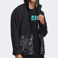 adidas Aop Block Colorblock Windproof Fleece Lined Stay Warm Hooded Jacket Black GT6484