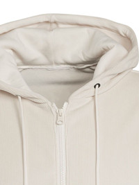 ribbed-paneled zip-up hoodie Highlights - Off-white - Ribbed texture - Full zip fastening - Kangaroo pocket - Three-stripe sleeve detail - Hooded neck Imported Composition Recycled Polyester 93%, Elastane 7% Washing instructions Read Manufacturer Guidelines
