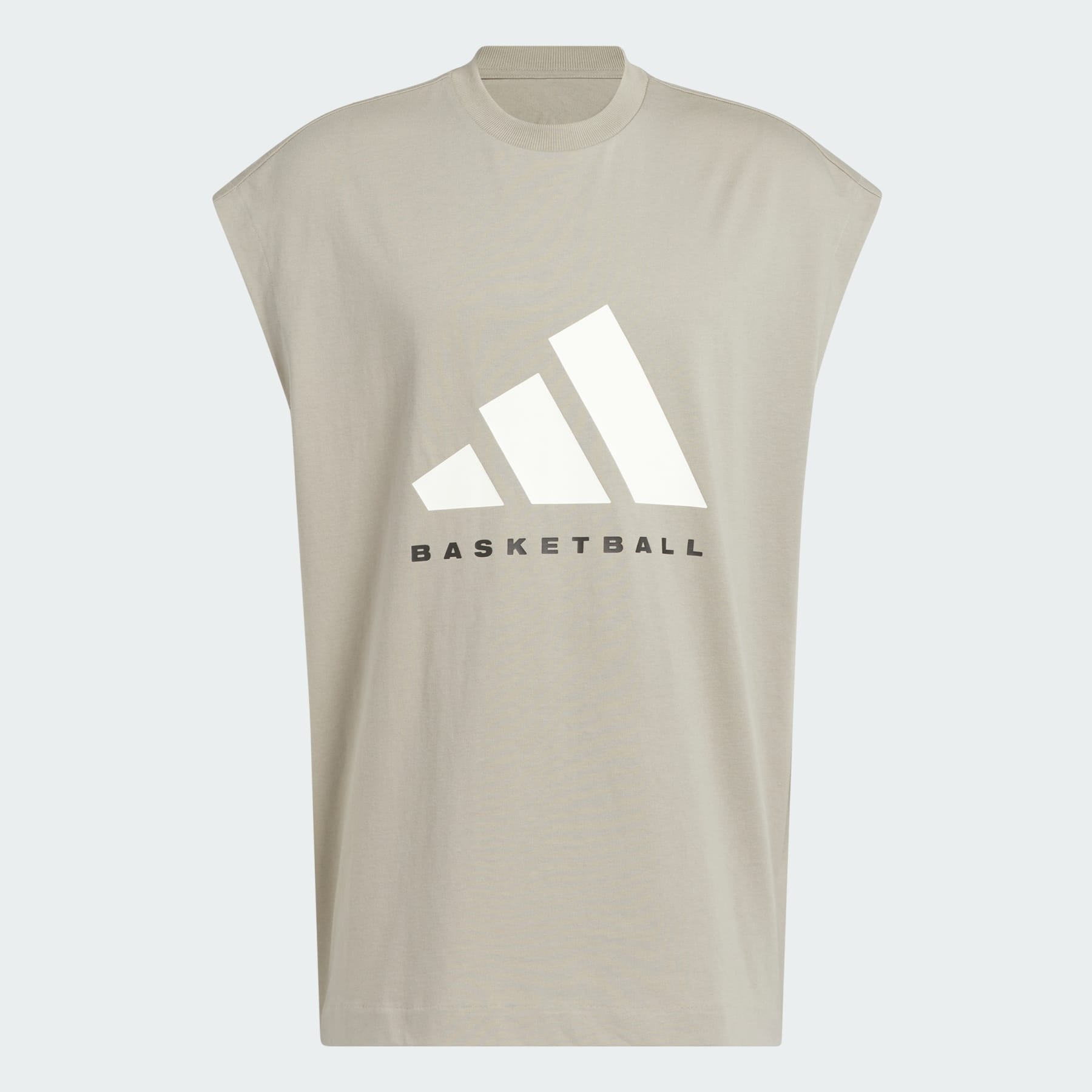 A sleeveless t-shirt for comfort on the basketball court. Power up your game in this adidas sleeveless basketball tee. The loose fit and sleeveless design give your arms full range of motion so you can get your shots off with ease. The large adidas Basketball 3 Bar logo on the chest shows your brand loyalty on the court. This tee was made using UNITEFIT — an all-gender fit system that was created with a spectrum of sizes, genders and forms in mind. Details - Loose fit - Ribbed crewneck - 100% cotton - Imported - Product code: JD6135 - Product color: Putty Beige