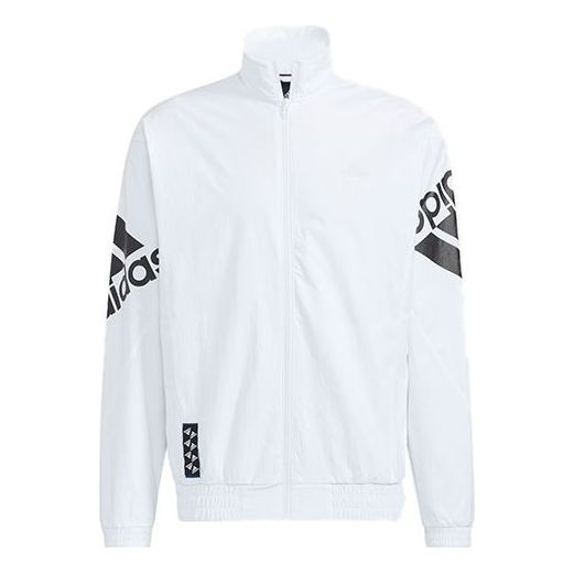 adidas Contrasting Colors Large Logo Zipper Cardigan Stand Collar Long Sleeves Jacket White HE7458