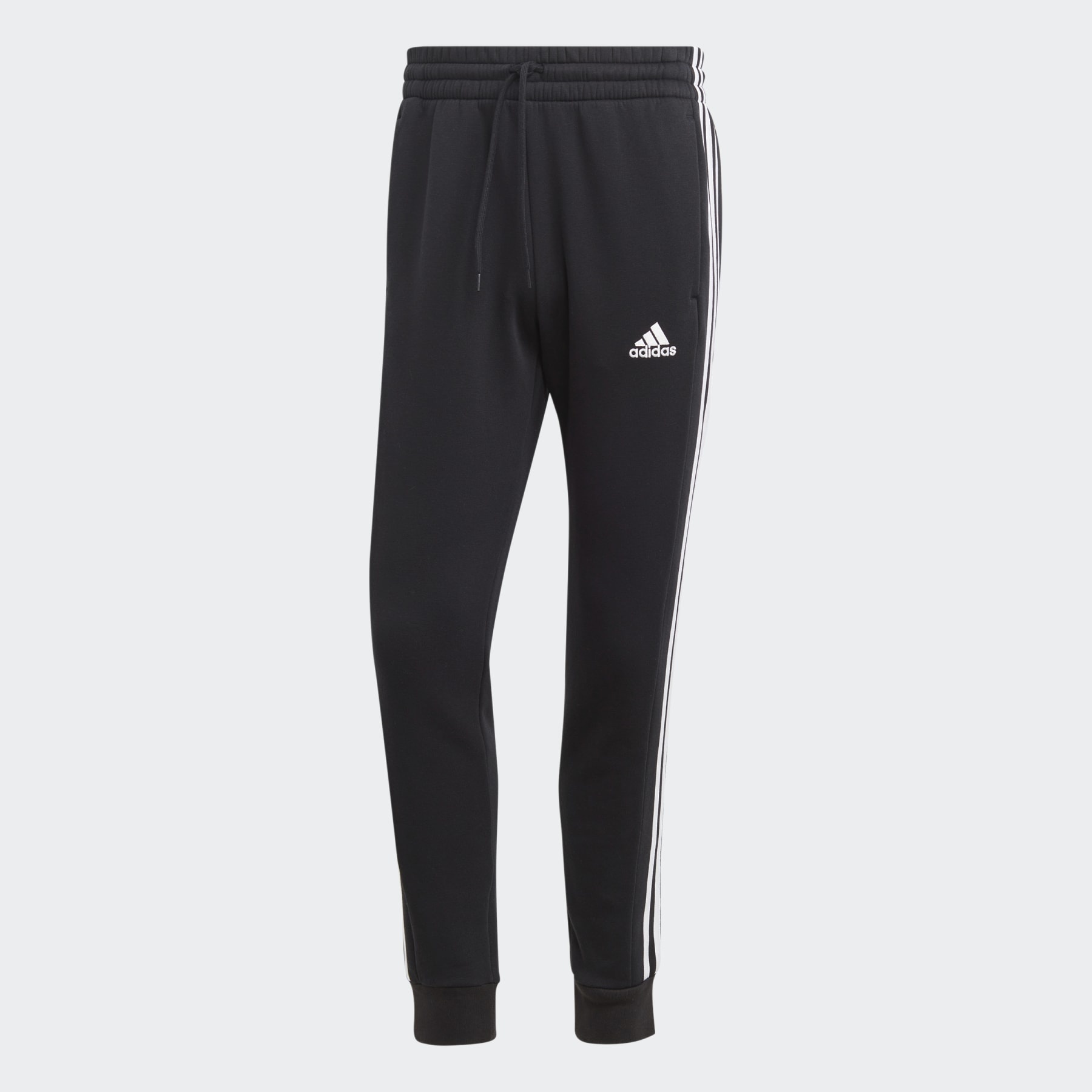 Fleecy-soft pants made with a blend of recycled and renewable materials. Whether it's a chilly day or you just want extra comfort, these adidas pants are your pick. Made from a soft cotton blend in fluffy fleece, they welcome all-day wear without a second thought. The mid-rise fit is finished with an elastic waist, and the legs taper to ribbed cuffs that let you show off your shoes. Front pockets make room for practicality. A minimum of 70% of this product is a blend of recycled and renewable materials. Details - Regular fit with mid rise - Elastic waist with drawcord - 78% cotton, 22% recycled polyester fleece - Front pockets - Tapered leg - Ribbed cuffs - Made with Better Cotton - Imported - Product code: IB4030 - Product color: Black / White
