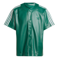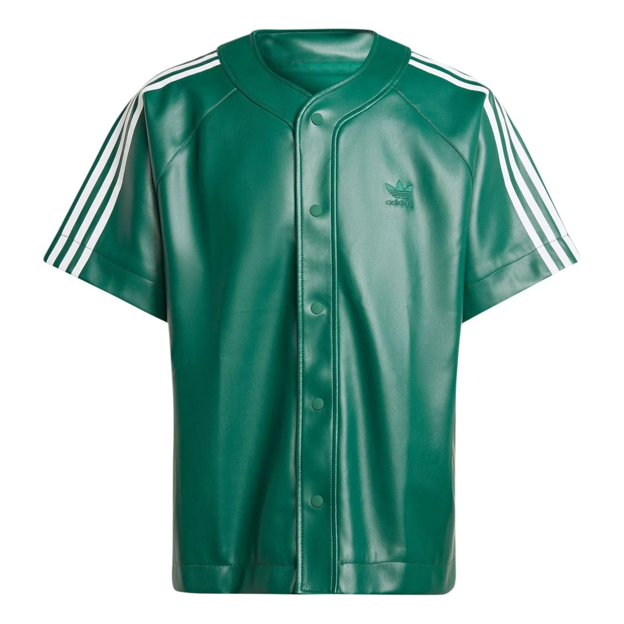 adidas Faux Leather Adicolor 3-Stripes Baseball Shirt Asia Sizing 'Collegiate Green' IZ4047