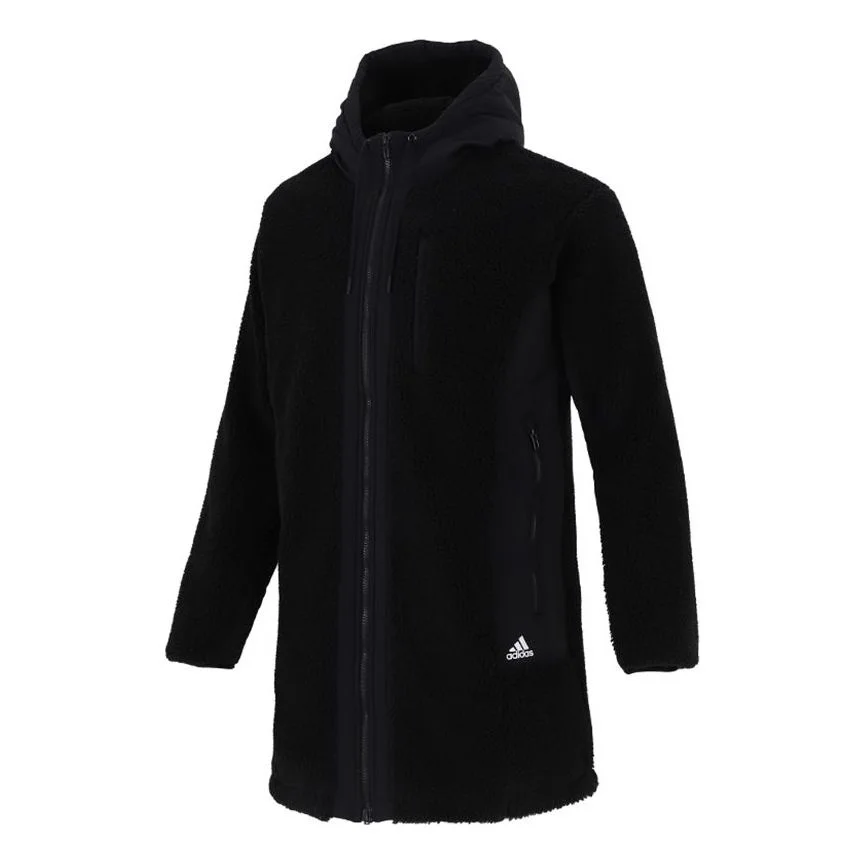 adidas Fleece Stay Warm mid-length hooded logo Jacket Black H39285
