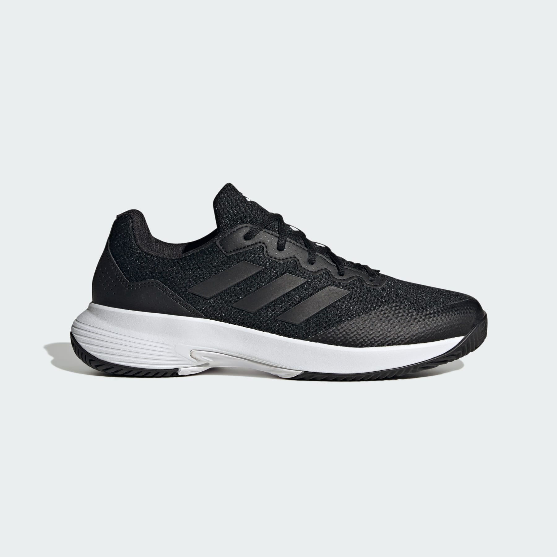 Comfortable tennis shoes made in part with recycled materials. Stay confident through every game, set and match. A lightweight mesh upper and padded heel make these adidas Gamecourt 2.0 shoes your perfect tennis partner. The full EVA midsole keeps you comfortable and connected to the court. An Adiwear outsole ensures game-changing traction on hard courts without sacrificing durability. Details - Regular fit - Lace closure - Open mesh upper - Padded collar - Textile lining - EVA midsole - Adiwear outsole - Upper contains a minimum of 50% recycled content - Imported - Product code: IG9567 - Product color: Core Black / Core Black / Grey Four