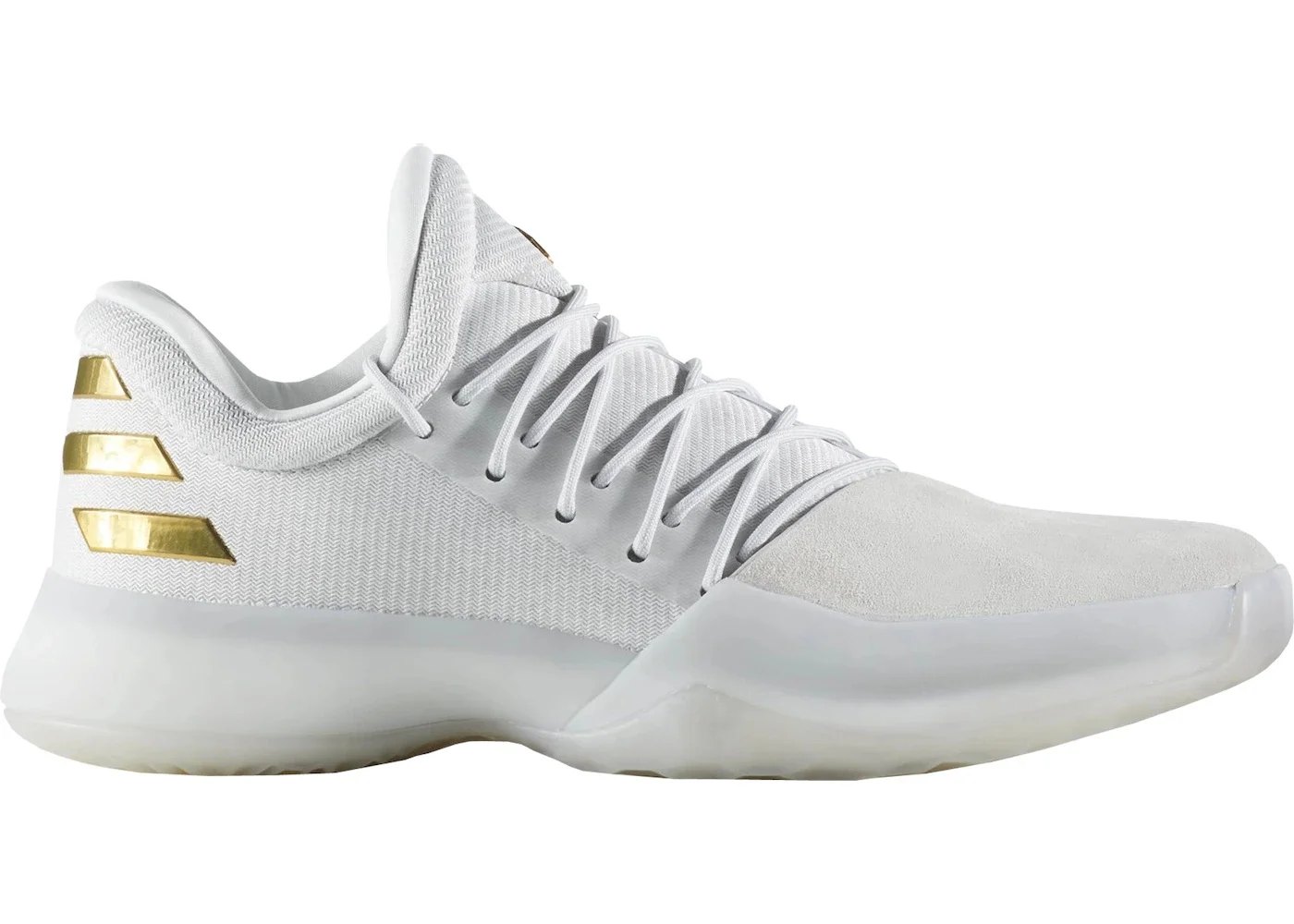 The adidas Harden Vol. 1 gets an award-themed makeover. Known as the "MVP" edition, this colorway was made in case "The Beard" earned Most Valuable Player honors for the 2016-17 NBA season. While he fell short of Russell Westbrook for that acknowledgement, you still have to give James Harden congratulations on a spectacular year leading his Houston Rockets. The sneaker itself is as clean as you can get, outside of an all-white pair. They come in a white, metallic gold and gum colorway. Featuring a white-based upper with a suede toe, metallic gold branding and a full translucent gum sole. Due to Harden not winning the MVP award, the release date for this adidas Harden Vol. 1 came as a surprise. They popped up randomly on July 1st, 2017 without any notice. Fans of the Harden Vol. 1 quickly caught win of this limited release and they instantly became another must-have release for fans of the silhouette. While many others not in "the know" might be reading this and finding out about this sneaker for the first time, don't worry. Our marketplace has your covered for all your buying and selling needs. So whether you need to buy or sell, we have pairs available online, now. - Style AC8107 - Colorway White/Metallic Gold-Gum - Retail Price 140 - Release Date 2017-07-01 - Featured false - Product Line adidas Harden