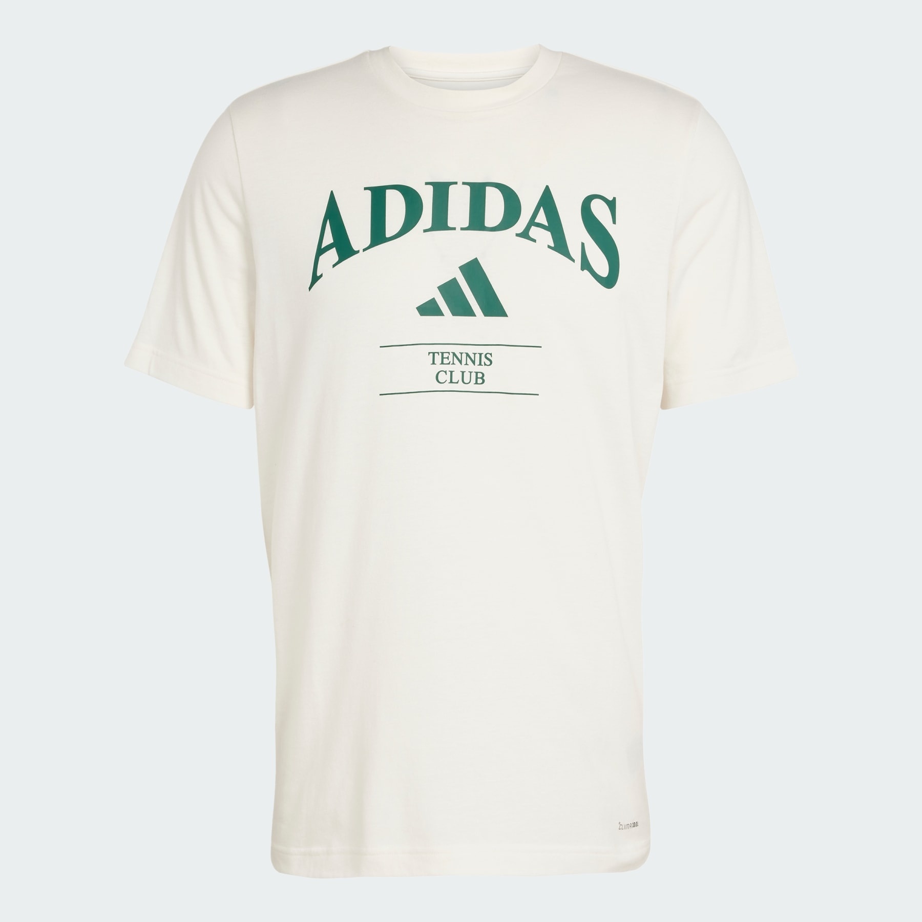 A vintage-style tee with CLIMACOOL to keep you cool, dry and ready. Serve up some adidas retro style. Inspired by a classic tennis look, this tee blends vintage vibes with modern performance. CLIMACOOL wicks and disperses sweat for cool, dry and distraction-free performance. The soft single jersey fabric feels great against your skin, keeping you comfortable on and off the court. CLIMACOOL helps you manage sweat with materials that wick and manage sweat quickly. Its fast-dry fibers give you a fresh-skin feel. Details - Regular fit - Ribbed crewneck - 65% polyester (recycled), 35% cotton - CLIMACOOL - Soft feel - Imported - Product code: JV7013 - Product color: Chalk White