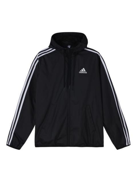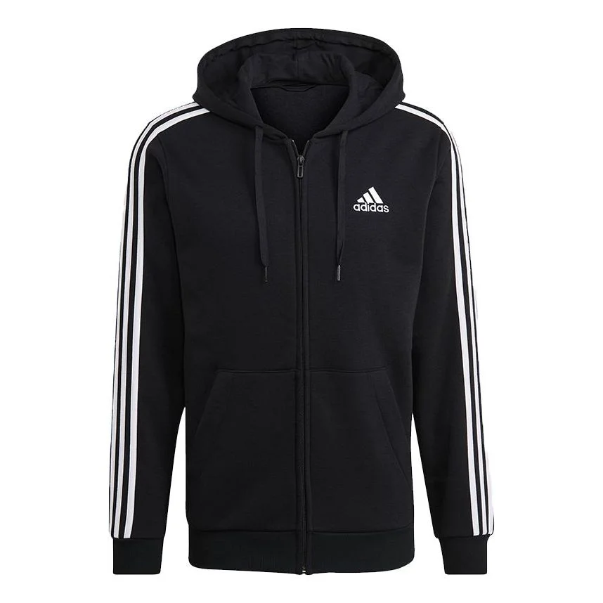 adidas M 3S Fl Fz Hd Stripe Sports Hooded Jacket Black GK9051