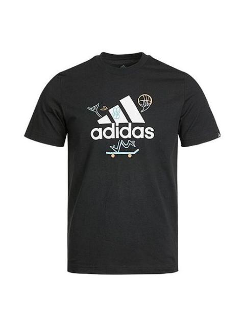 adidas M 3s Sj T Sports Training Stripe Round Neck Short Sleeve Black GL3732