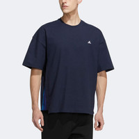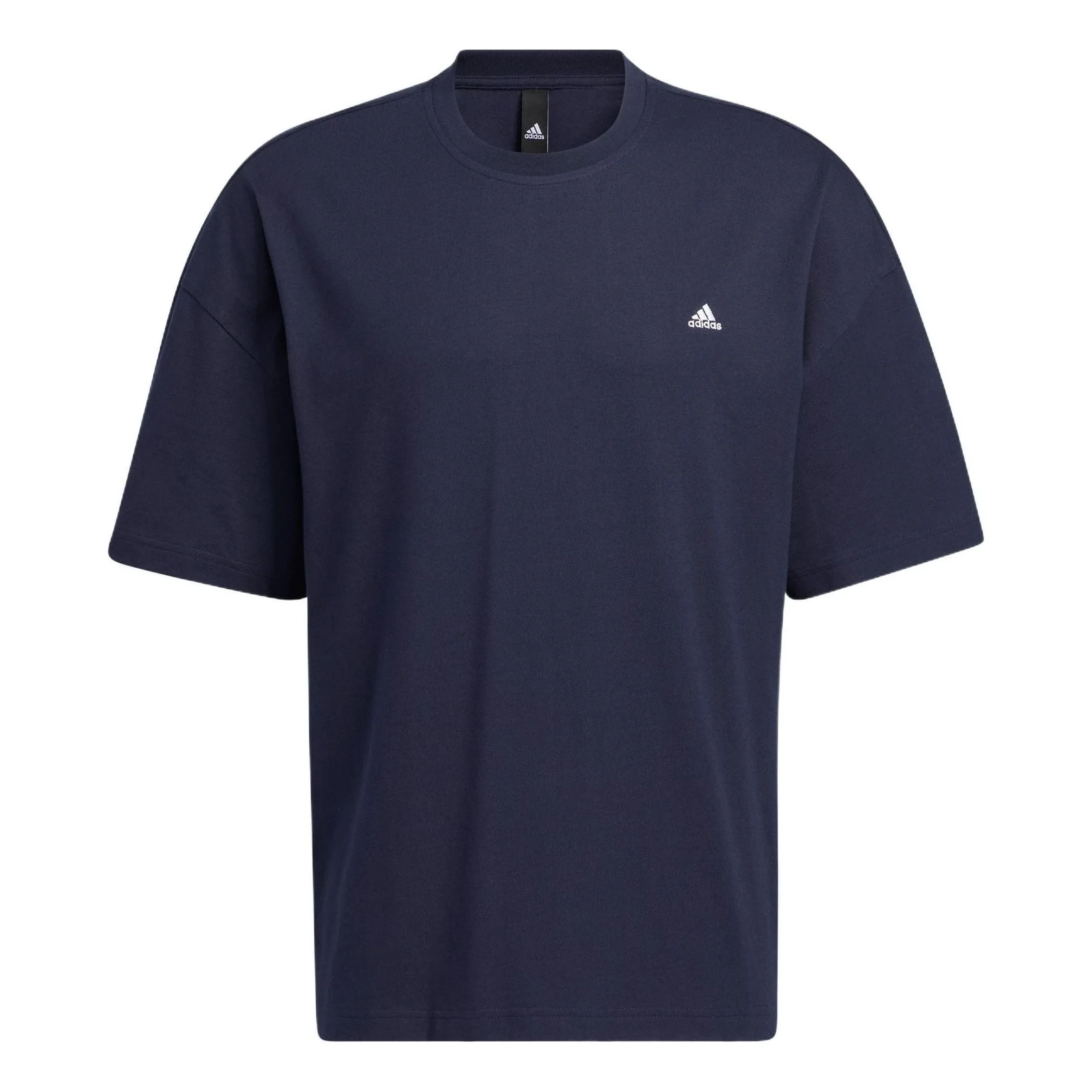adidas M City Loose T Solid Color Logo Round Neck Short Sleeve Navy Blue HC9973