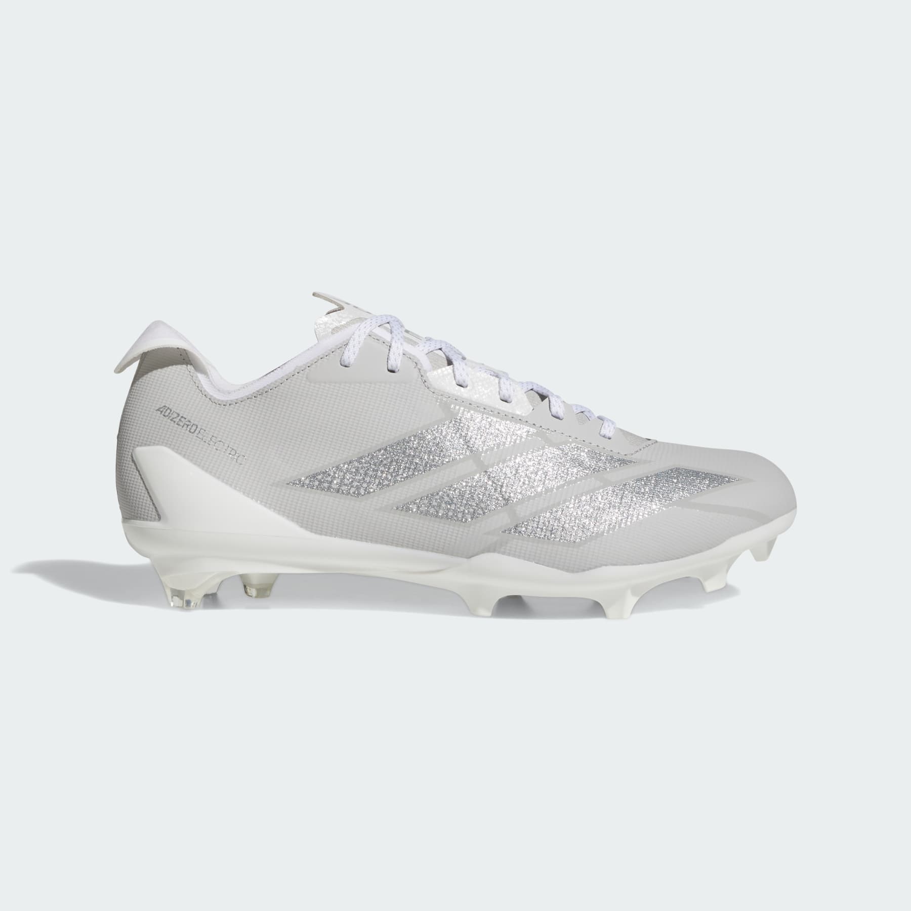 Supportive football cleats made in part with recycled materials. These football cleats are built specifically for players who break the game wide open with their speed. They feature a lightweight synthetic and textile upper that won't slow you down and they have a cleated outsole for outstanding traction on plants and cuts. A TPU heel clip provides additional critical support. This product features at least 20% recycled materials. By reusing materials that have already been created, we help to reduce waste and our reliance on finite resources and reduce the footprint of the products we make. Details - Regular fit - Lace closure - Synthetic and textile upper - Textile lining - Synthetic cleated outsole - Contains at least 20% recycled content - Imported - Product code: JH8743 - Product color: Grey Two / Silver Metallic / Cloud White