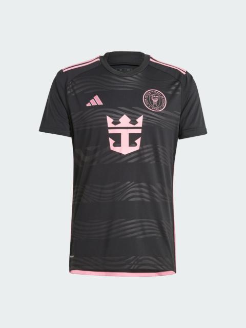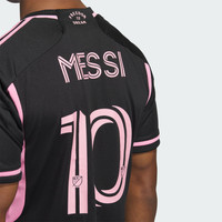 An Inter Miami away jersey built to perform and made with recycled materials. When darkness descends, Miami lights up. Inspired by Magic City's glittering waterfront, this Inter Miami CF away authentic jersey from adidas enchants with pink details and an undulating graphic. Created to keep soccer players at full speed, it combines lightweight fabric and moisture-wicking AEROREADY. The back neck signoff displays the team's aspirational motto. This product is made with 100% recycled materials. By reusing materials that have already been created, we help to reduce waste and our reliance on finite resources and reduce the footprint of the products we make. Details - Regular fit - Ribbed crewneck - 100% recycled polyester tricot - Back panel: 100% recycled polyester mesh - AEROREADY - Ribbed cuffs - "Freedom to Dream" on back collar - Inter Miami CF heat-applied crest - Droptail hem - Imported - Product code: JE9745 - Product color: Black