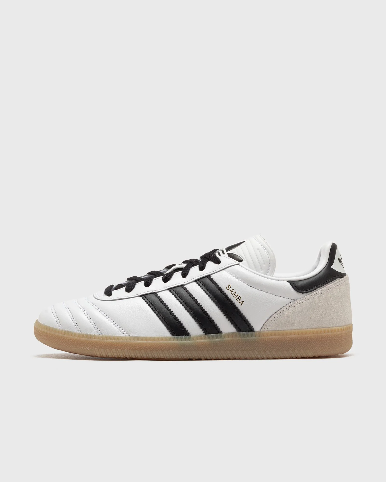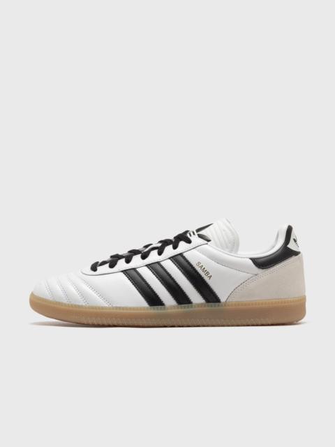 The Samba from adidas is no longer just what it originally was: a soccer shoe. The original model was designed in the late 1940s by adidas founder Adi Dassler. These were specially developed to give footballers more grip when they had to play on an ice-covered pitch. Since then, the Samba has become an integral part of the streetwear scene. This version stays true to the original with a leather upper and serrated 3-Stripes, but gets an update with a suede heel and rubber outsole. - Laces - Leather and synthetic upper - Synthetic lining - Rubber outsole Article number: JQ9055 Gender: men Color: SUPCOL/LUCLEM/GUM4 Material: 30% Rubber, 70% Synthetic/Textile