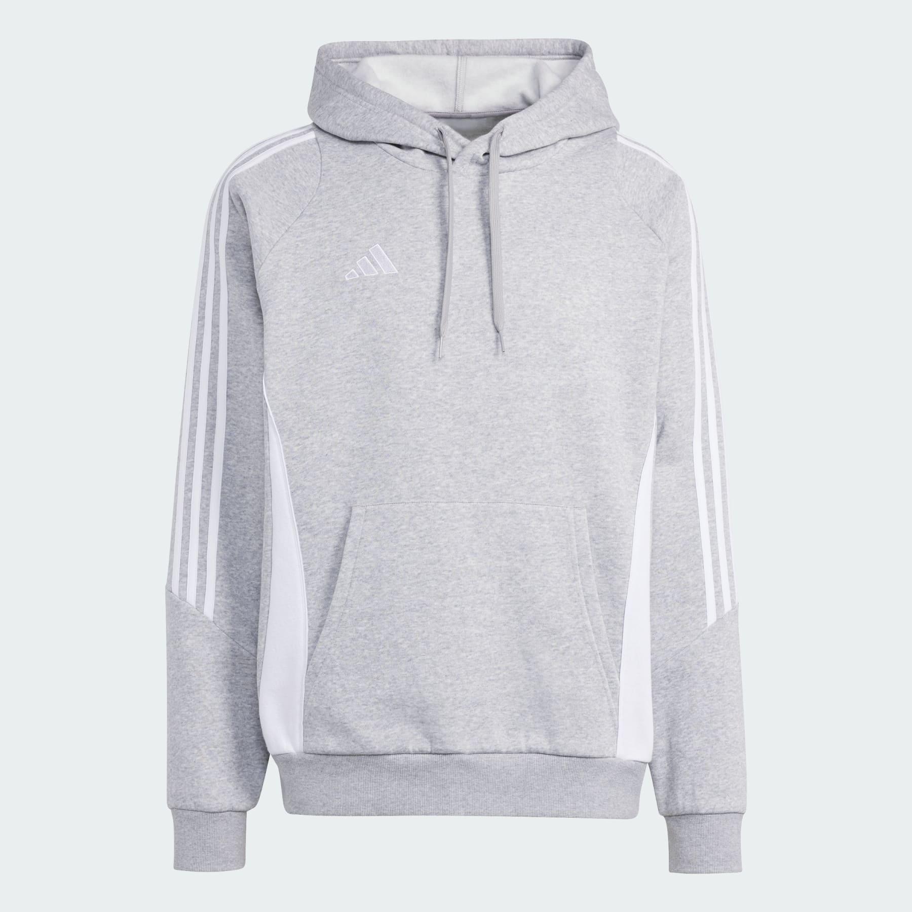 A casual hoodie made in part with a blend of recycled and renewable materials. Stay comfortable on the sidelines. Thanks to its loose fit and fleece build, this adidas sweat hoodie is ideal for staying cozy on the way to and from the soccer pitch. Just pull up that drawcord-adjustable hood when you need to focus before matches and training sessions.By choosing recycled, we are able to reuse materials that have already been created, which helps to reduce waste. Renewable materials choices will help us to remove our reliance on finite resources. Our products made with a blend of recycled and renewable materials feature at least 70% total of these materials. Details - Loose fit - Drawcord-adjustable hood - 70% cotton, 30% polyester (recycled) - Kangaroo pocket - Ribbed cuffs and hem - Contains a minimum of 70% recycled and renewable content - Imported - Product code: IR7545 - Product color: Medium Grey Heather / White