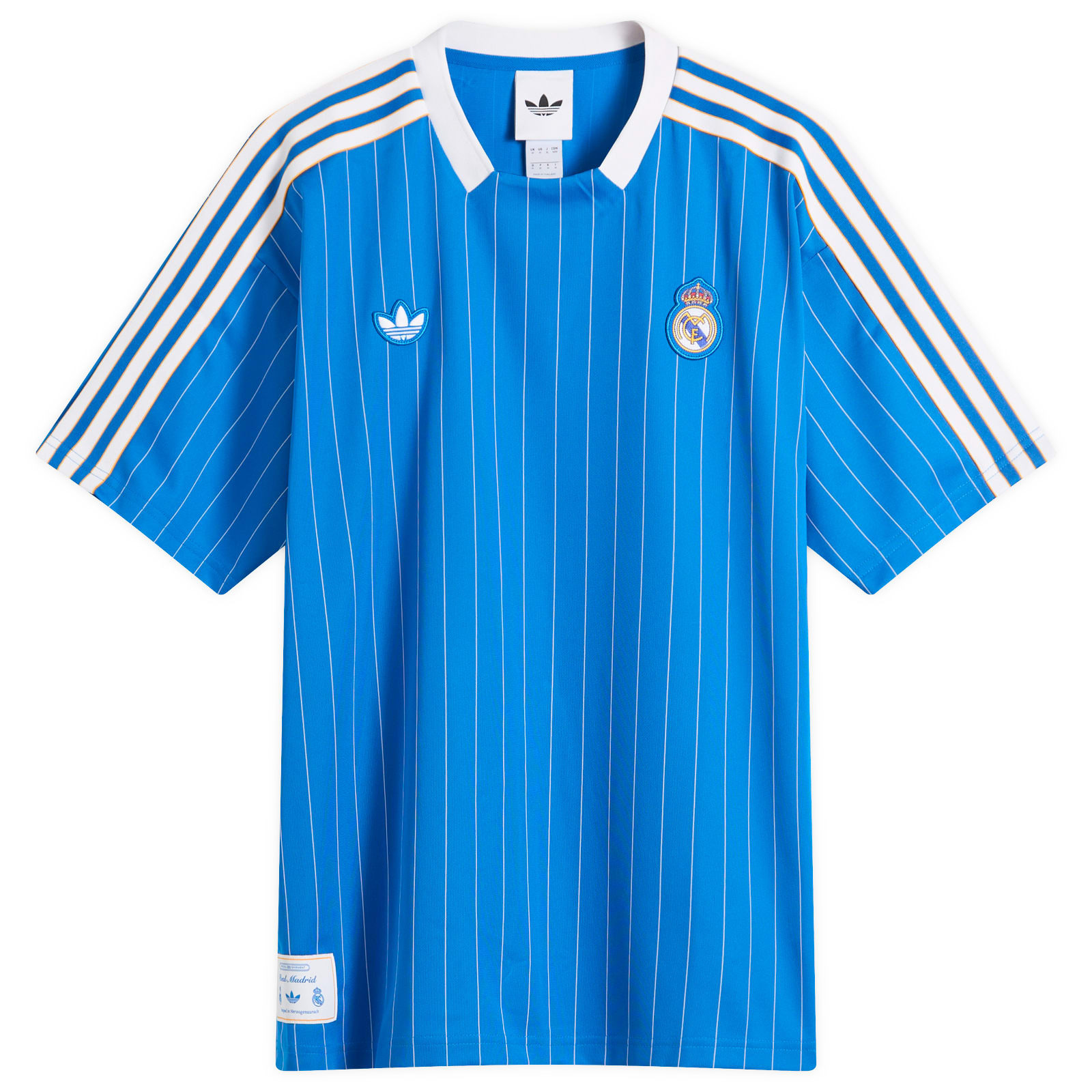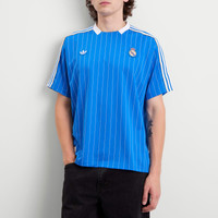 adidas Originals advances its glittering line-up of retro Icon jerseys with this Real Madrid kit in bold “Bluebird” blue. Detailed with thin pinstripes, it features the slightly more muted and layered club crest than the one we know today. Whether you're hitting the streets or cheering from the stands of the Bernabeu, this jersey channels classic Madrileno style at its finest. - 97% Recycled Polyester, 3% Elastane - Loose Fit - Crewneck - Embroidered Branding - Style Code: JN3060