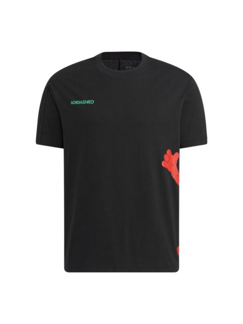 adidas neo Geometry Pattern Printing Round Neck Short Sleeve Unisex Black T-Shirt HM9999
