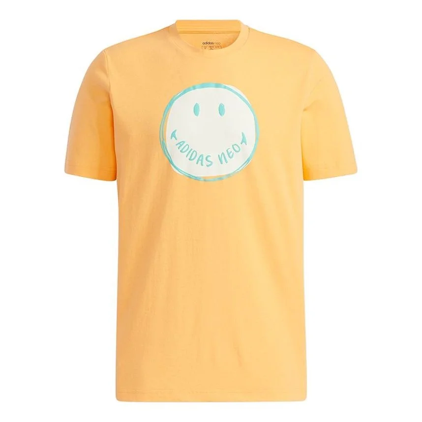 adidas neo M Smly Tee 1 Smiling Face Printing Sports Round Neck Short Sleeve Orange Yellow GP5780