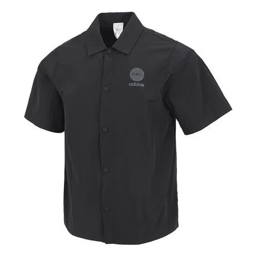 adidas neo Solid Color Alphabet Logo Printing Athleisure Casual Sports lapel Short Sleeve Shirt Blac
