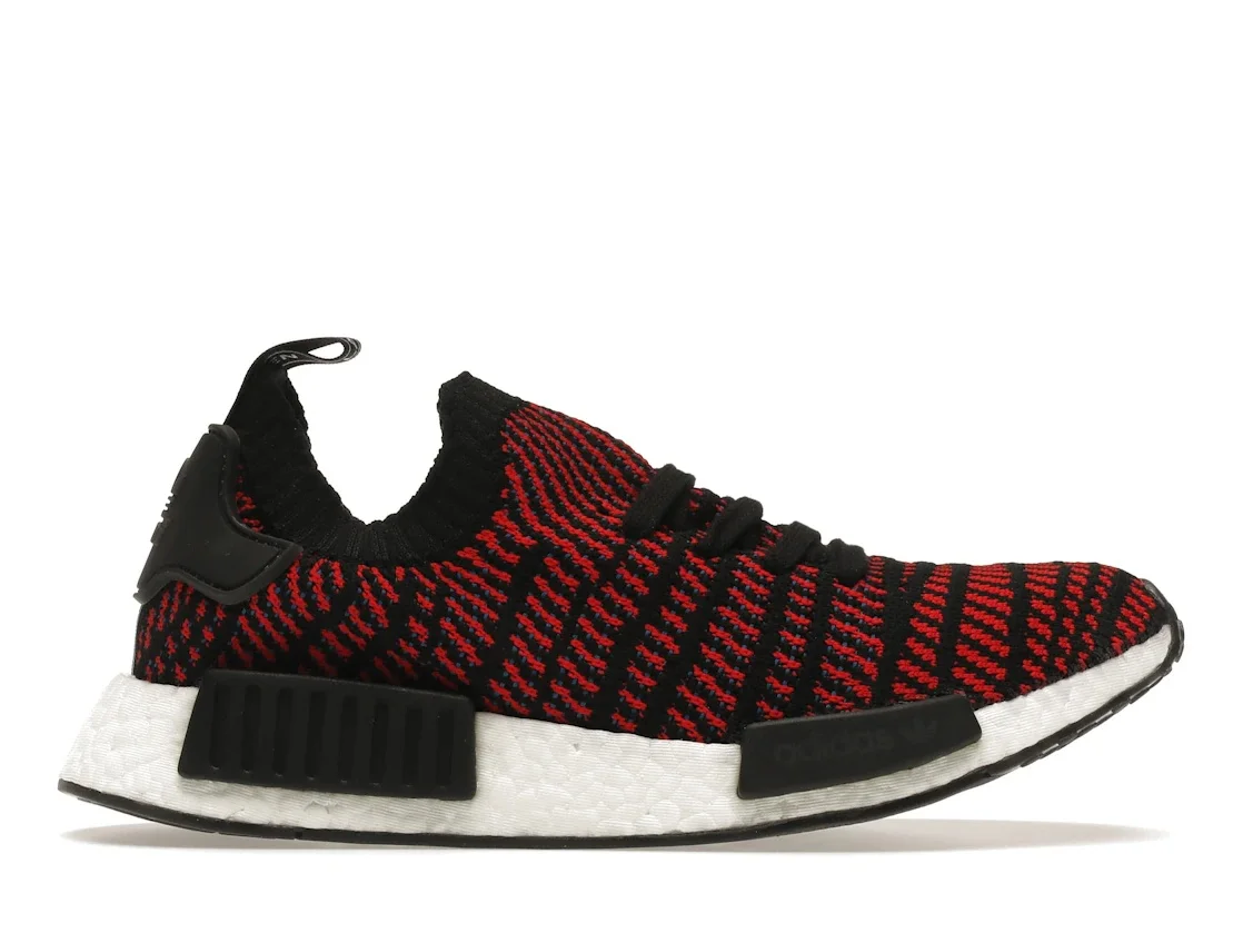 The adidas NMD R1 STLT Black Red is part of the NMD R1 series and has a black base color, which is accented with solid red stripes. The upper of the NMD R1 STLT Black Red is made of a lightweight and breathable PrimeKnit material that provides comfort and support. The PrimeKnit material is also flexible, allowing for free movement of the foot. The sneaker also features a BOOST midsole that offers exceptional cushioning and energy return. The midsole is bouncy, providing a comfortable and responsive feel with every step. The outsole of the sneaker also has a durable rubber material that provides excellent traction and grip on a variety of surfaces. We think that the notable feature of the adidas NMD R1 STLT Black Red is its sock-like construction, which ensures a snug fit and eliminates the need for traditional laces. The shoe's collar is also made of the PrimeKnit material, ensuring a comfortable fit and easy on and off. The sneaker was released on December 22nd, 2017, at a retail price of $170. - Style CQ2385 - Colorway Core Black/Red Solid/Blue - Retail Price 170 - Release Date 2017-12-22 - Featured false - Product Line adidas NMD