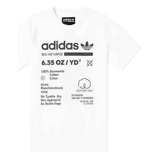 adidas originals Alphabet Printing Round Neck Short Sleeve White DM2084