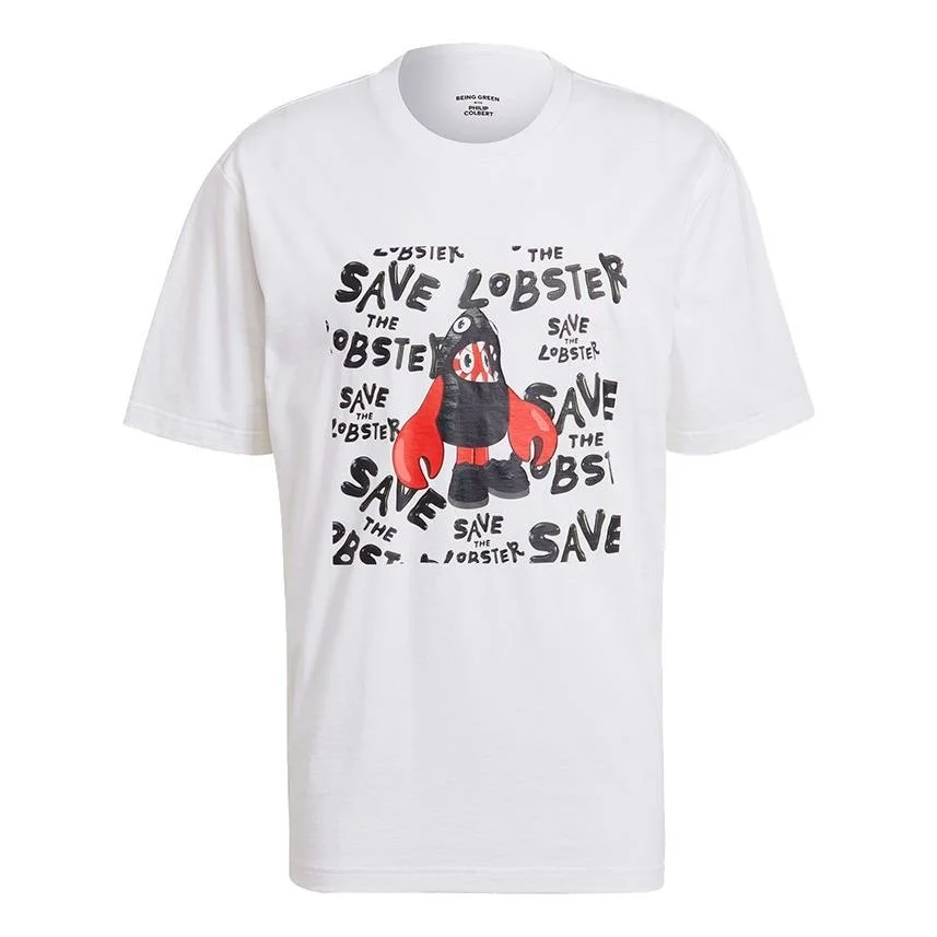 adidas originals Artist Tee Ss Cartoon Dragon Printing Casual Sports Short Sleeve White HA4700
