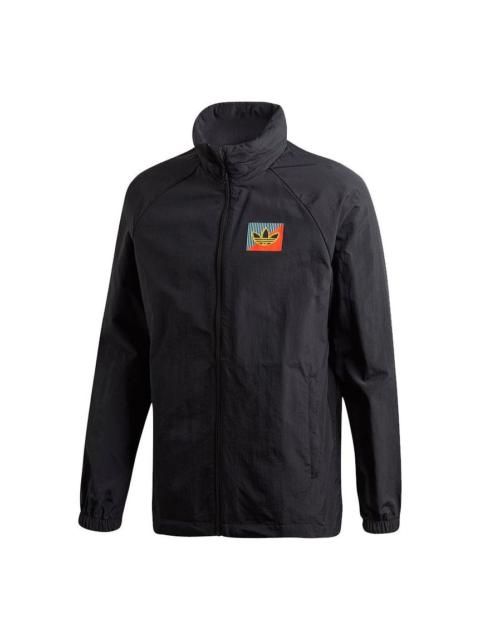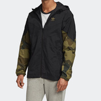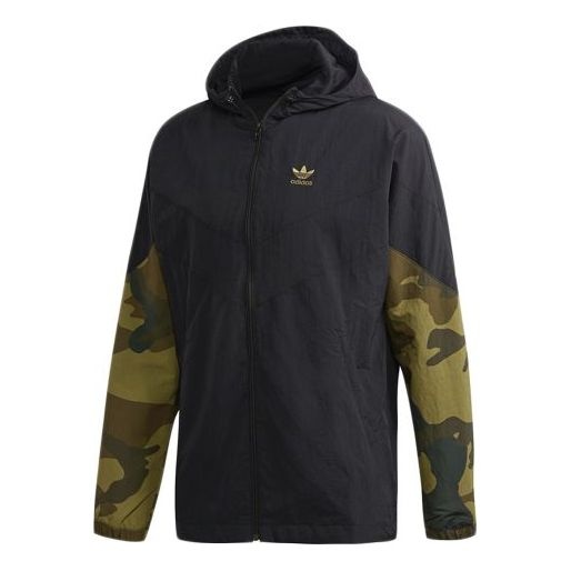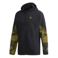 adidas originals Camo Wb Camouflage Splicing Sports hooded Windbreaker Jacket Black FM3359