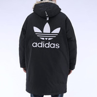 adidas originals Down Fur Parka Casual Sports Stay Warm hooded down Jacket Black GE1316