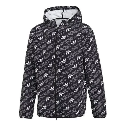 adidas originals Full Print Athleisure Casual Sports hooded Woven Windproof Outdoor Jacket Black DH4