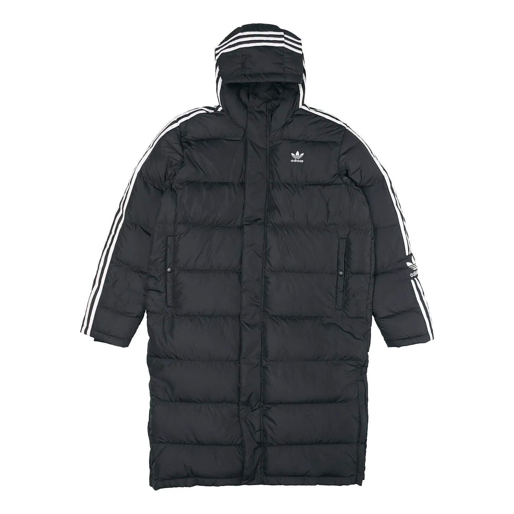 adidas originals Long Down Side Logo Printing mid-length Sports Down Jacket Black HI4658