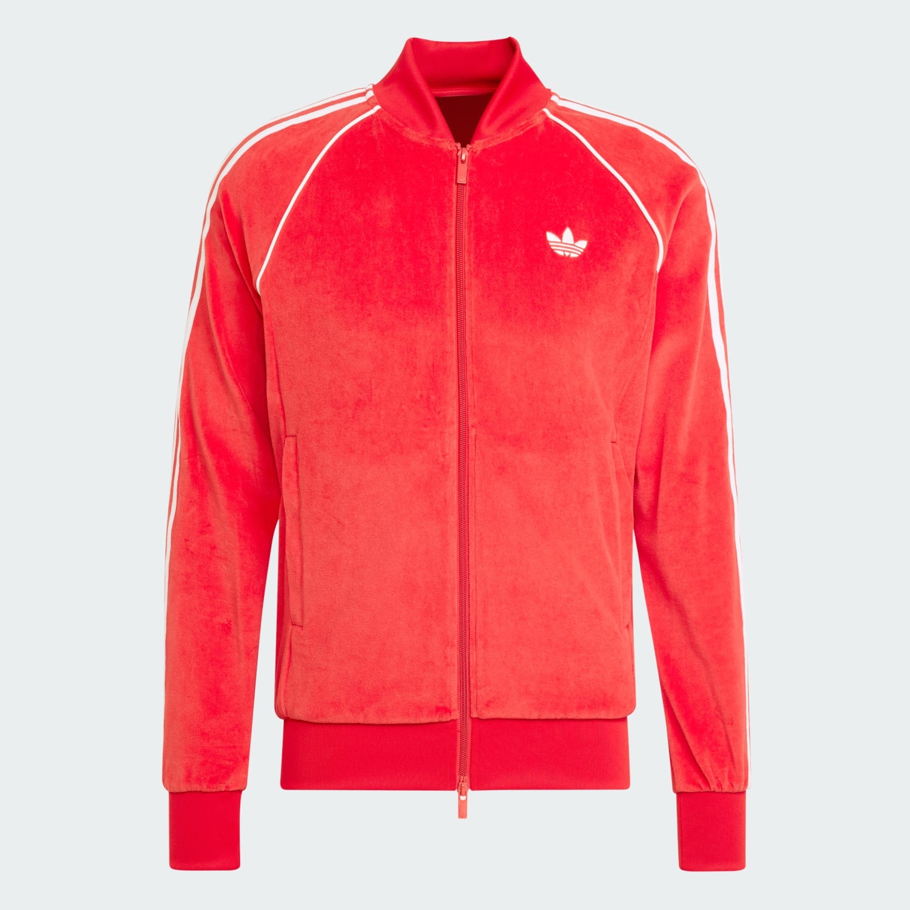 A classic track top made of plush velour. Whether you're lounging at home or hitting the town, this adidas track top has you covered. Plush velour gives it a luxurious feel. With a ribbed collar and cuffs and a slim fit that hugs the body, it's designed to be as stylish as it is comfortable. Details - Slim fit - Zip closure - 79% cotton, 21% polyester (recycled) - Imported - Product code: JX1560 - Product color: Better Scarlet