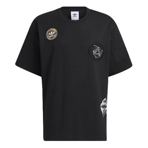adidas originals Pattern Logo Round Neck Short Sleeve Black HA1495