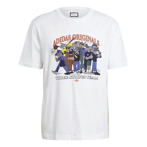 adidas originals Rateunion Tee Retro Funny Cartoon Printing Sports Short Sleeve White GN3281
