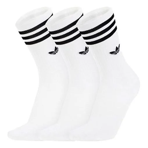 adidas originals Solid Color logo Sports Basketball Socks 3 Pairs White DX9091