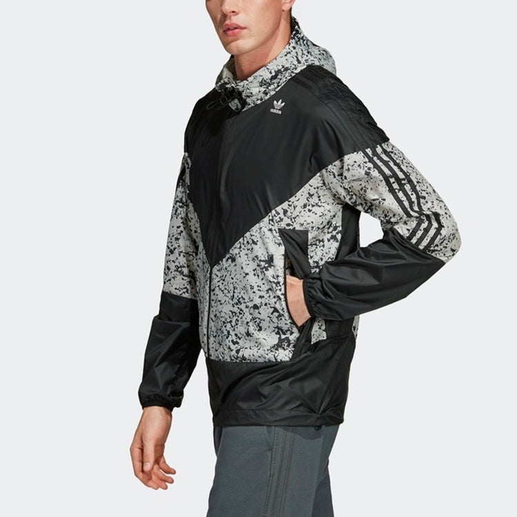 adidas originals Splicing logo Printing Casual Hooded Jacket Black White Colorblock DV1965