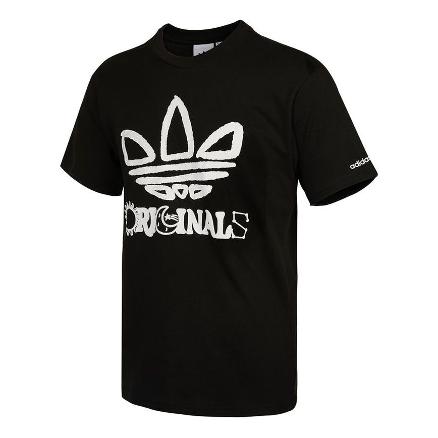 adidas originals Trefo Graffiti Logo Printing Sports Short Sleeve Black H32312