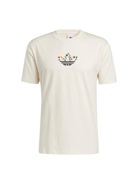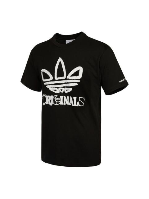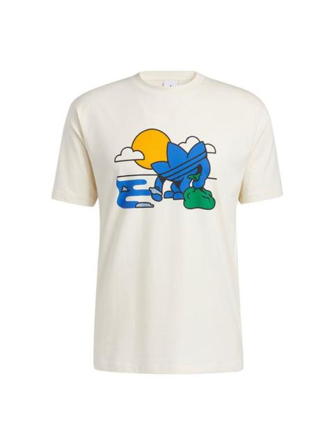 adidas originals Trefo Graffiti Logo Printing Sports Short Sleeve White H32311