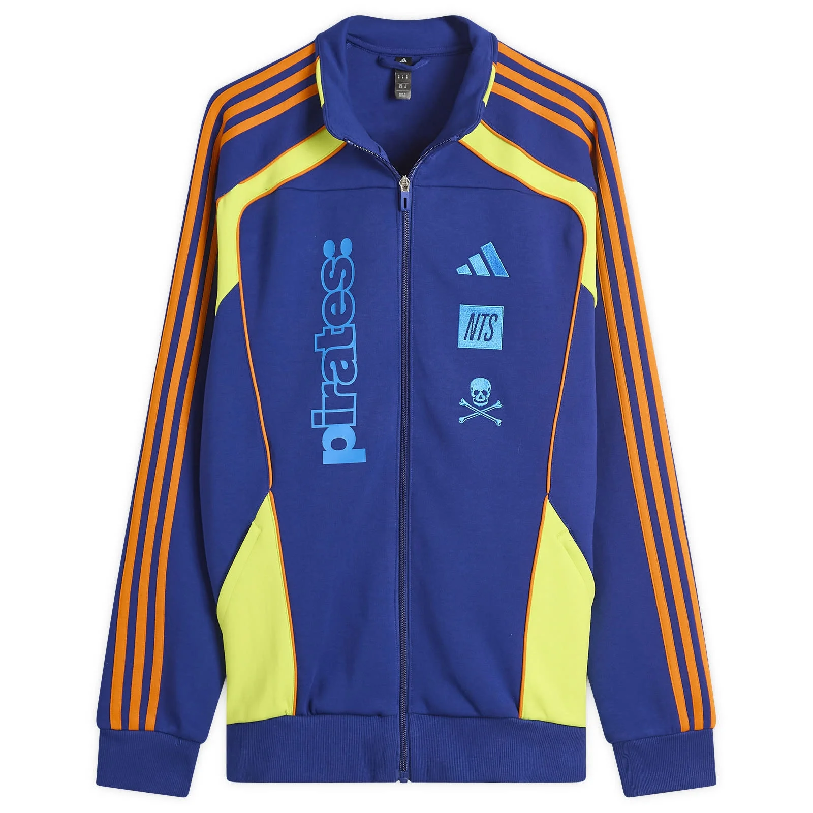 Football style and sound culture collide in this vibrant adidas tracksuit top, made in collaboration with NTS Radio. Inspired by 2010s football kits and the Amapiano beats of South Africa, it channels the energy of Orlando Pirates FC. Bold front graphics - featuring the team badge, NTS logo, and “Pirates” script - tie it all together. - 66% Cotton, 34% Recycled Polyester - Zip Closure - 2 Front Pockets - Elasticated Cuffs & Hem - Bungee Adjustable Hem - Embroidered Branding - Product Code: JL8073