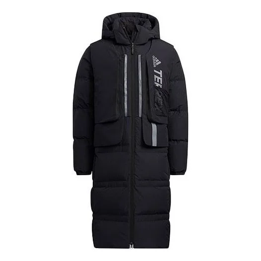 adidas Outdoor Sports Detachable Vest Long Hooded With Down Feather Jacket Black H13853