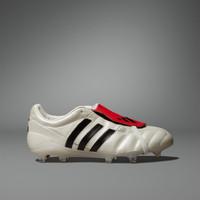 Classic, limited-edition Predator cleats made in Germany. Roll back the years in a pair of limited-edition Predator Mania cleats. Crafted in the legendary adidas factory in Scheinfeld, these iconic soccer cleats have the classic leather upper, fold-over tongue and tongue strap. "Made in Germany" sign-offs and that signature color bring a finish that's unmistakably Predator. Details - Regular fit - Lace closure - Leather upper - Textile lining - Fold-over tongue - Firm ground outsole - Imported - Product code: IH0965 - Product color: Off White / Cloud White / Cloud White