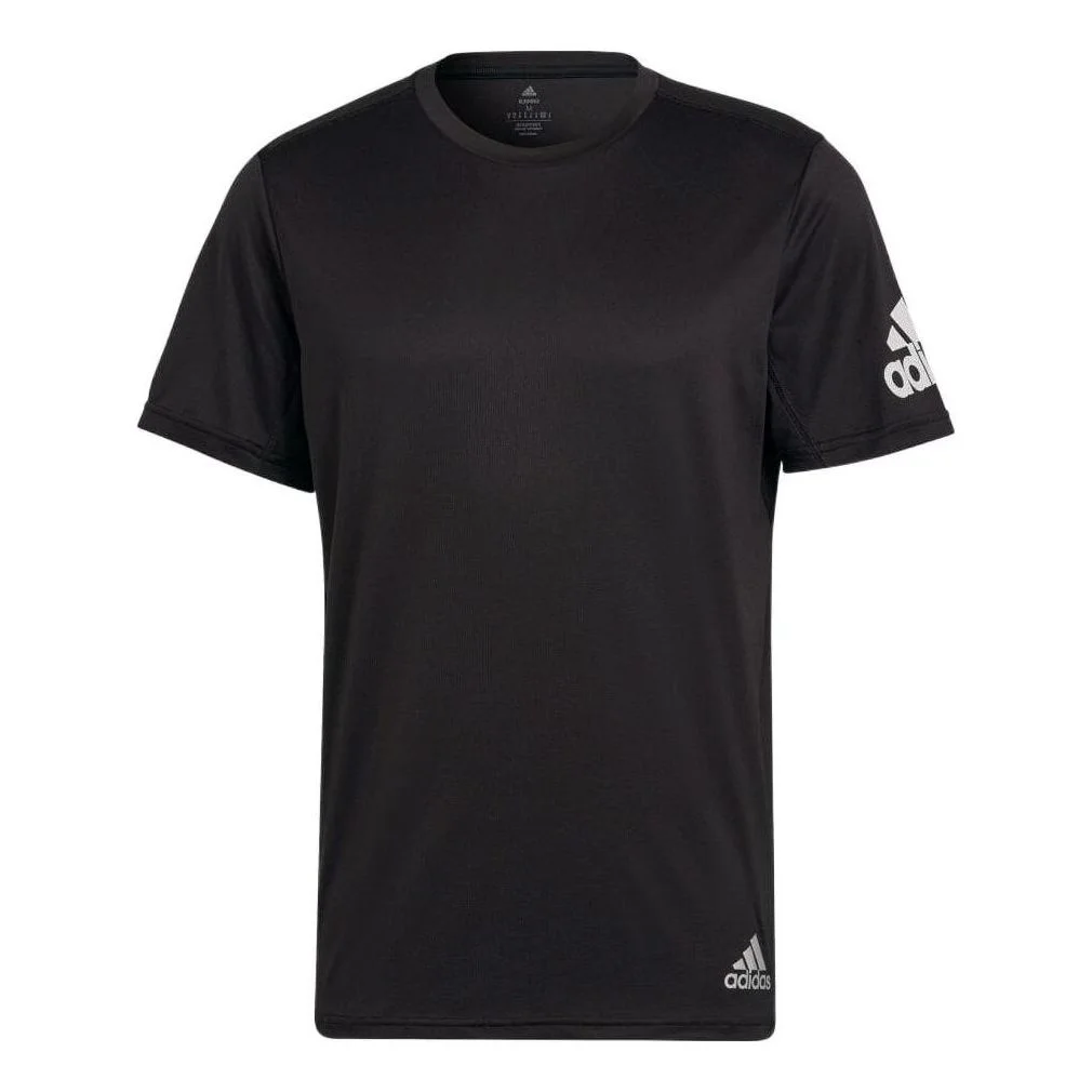 adidas Shoulder Logo Printing Solid Color Round Neck Short Sleeve Black HB7470