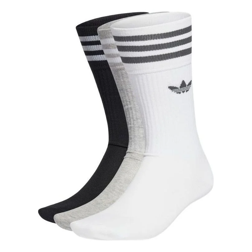adidas Solid Crew Socks 3 Pairs 'White Black Grey' HC9558