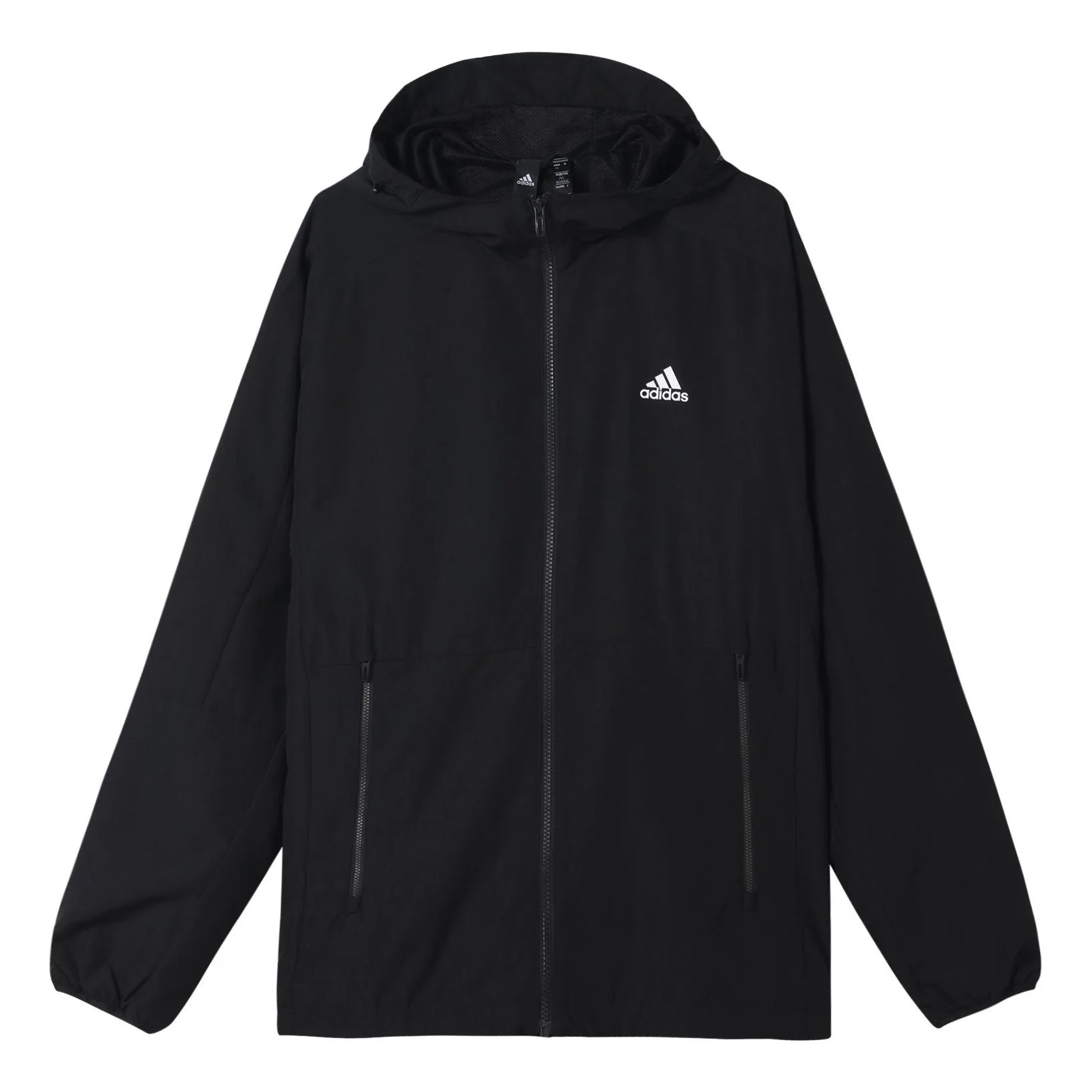 adidas Sports Long Sleeves Woven Windproof hooded Logo Jacket Black H40228