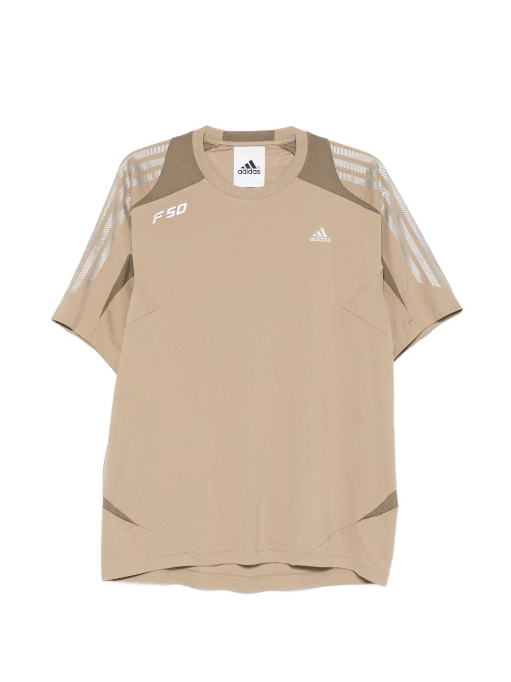 stripes T-shirt Highlights - Beige - Round neck - Short sleeves - Stripes at the shoulders - Logo print Imported Composition Recycled Polyester 100% Washing instructions Machine Wash
